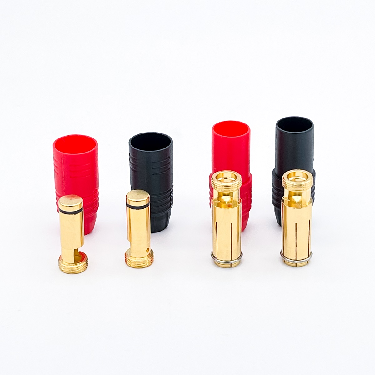 Amass AS150 female connectors.  Includes 2 anti-spark male and 2 female connectors.  These are typically put on the ESC or charger.  For batterie we offer a set with non anti-spark male connectors.  Click HERE